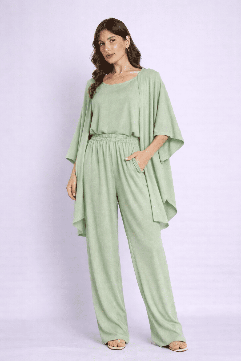 • Use o kimono Eli, a calça Anitta e a regata Valentina juntos para um look completo e sofisticado.