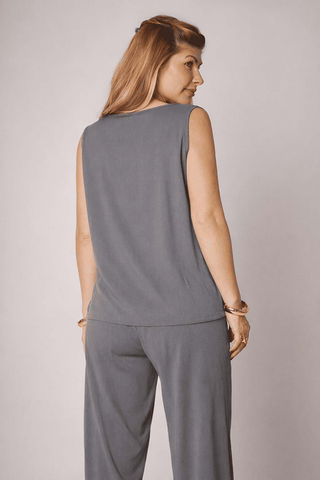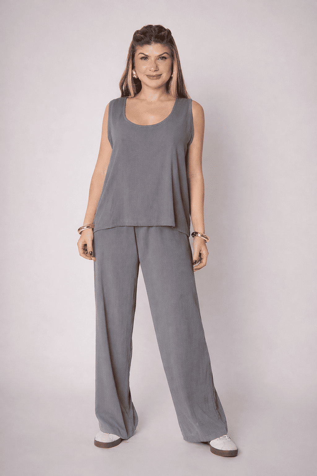 A Valentina é aquela regata que une conforto e estilo sem esforço, perfeita pra descomplicar o seu dia a dia. Com um caimento leve e elegante, ela é a base ideal para qualquer look, da manhã à noite.