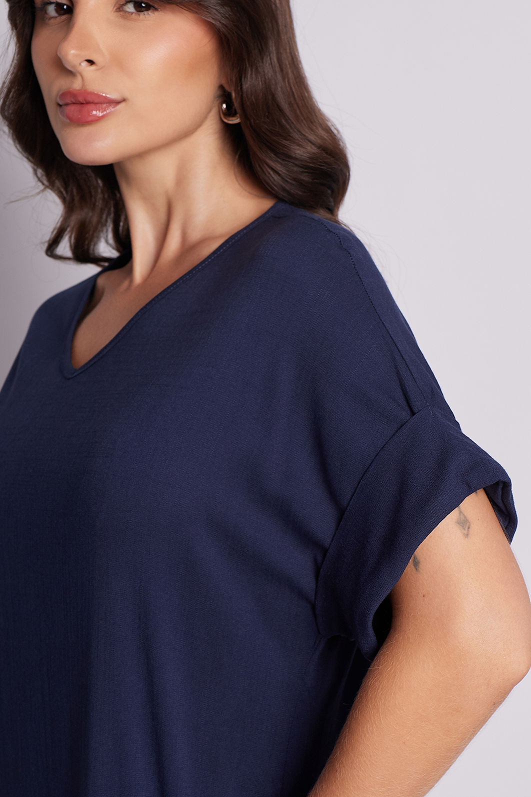 Decote em V superversátil que alonga o pescoço e valoriza o colo com delicadeza.
