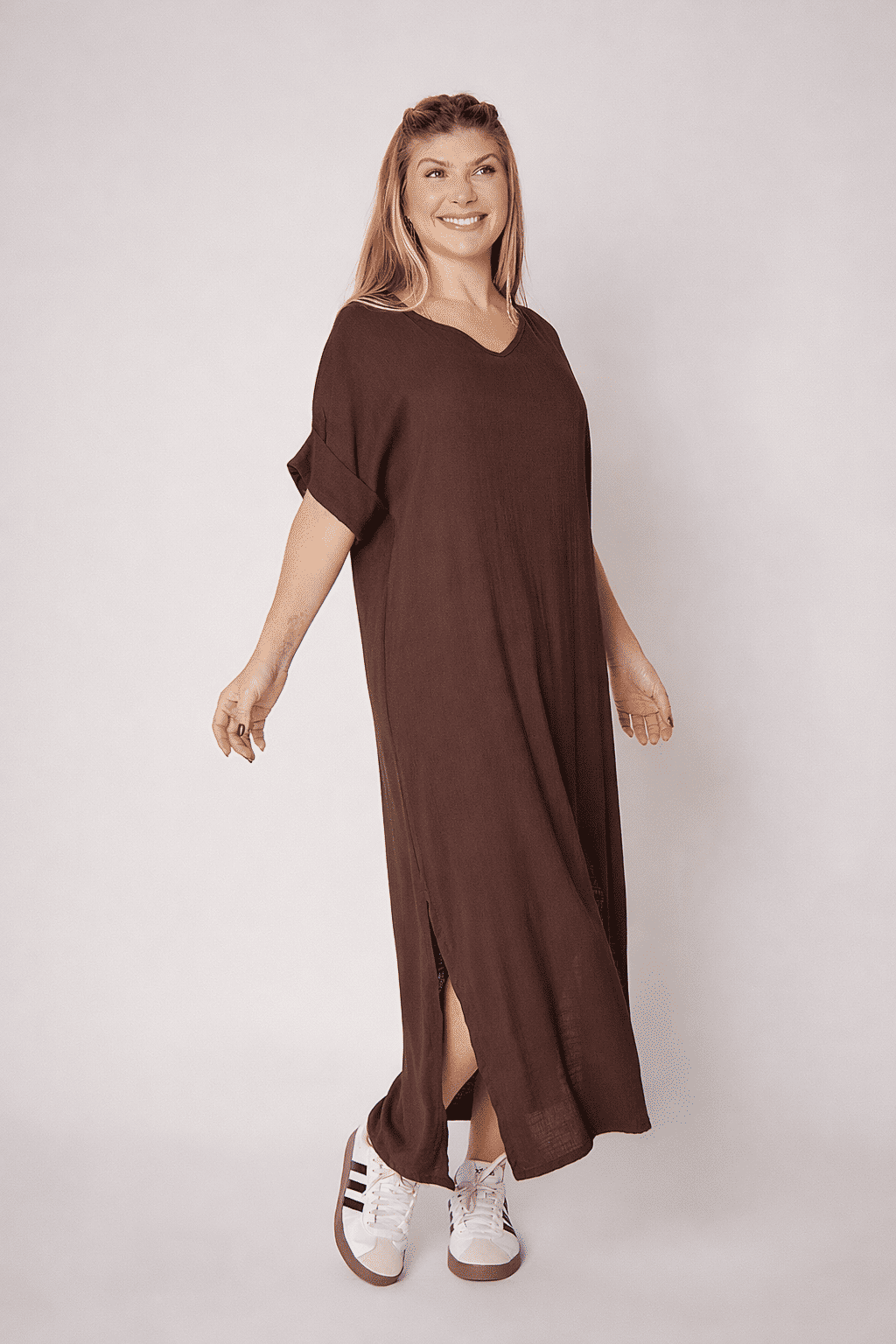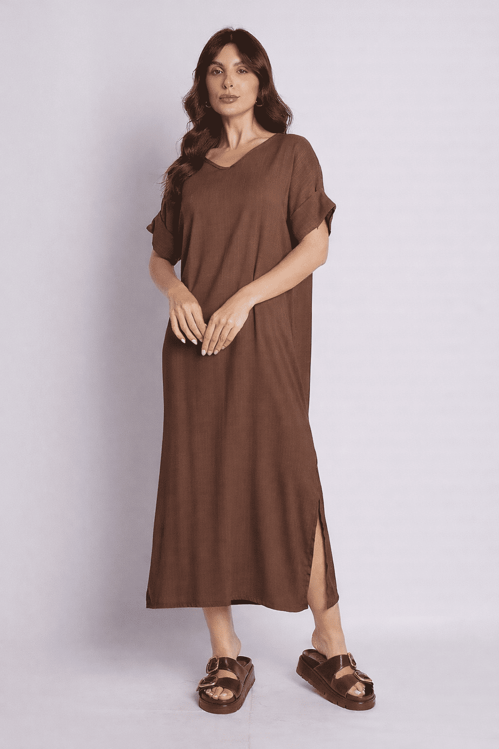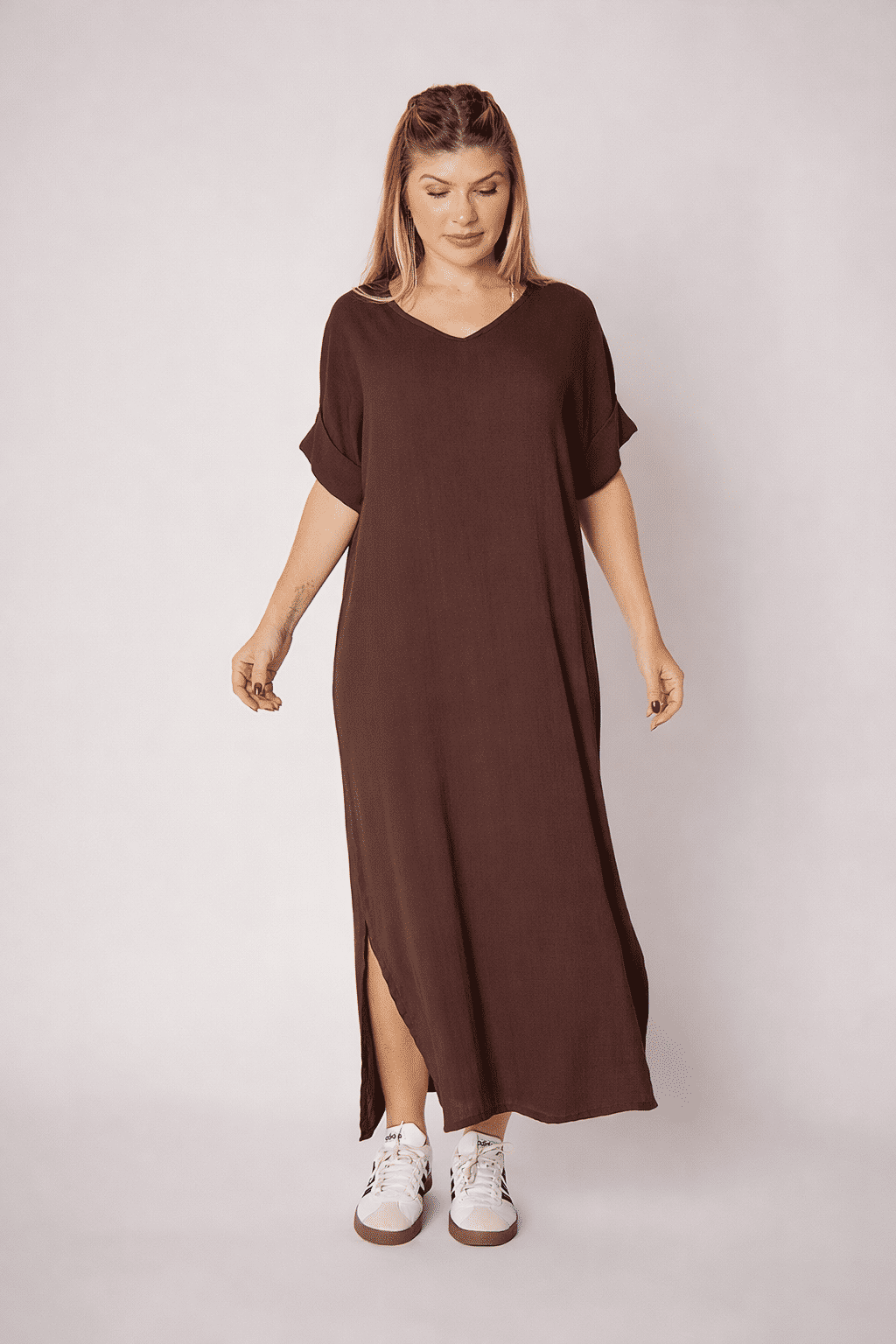 Combine o Vestido Elen com rasteirinhas e sandálias pra um look casual chique no dia a dia, ou adicione acessórios e um salto pra um toque mais sofisticado. É a peça que transita entre o trabalho, um almoço com as amigas ou um passeio no fim de semana, sempre te deixando linda e confortável.